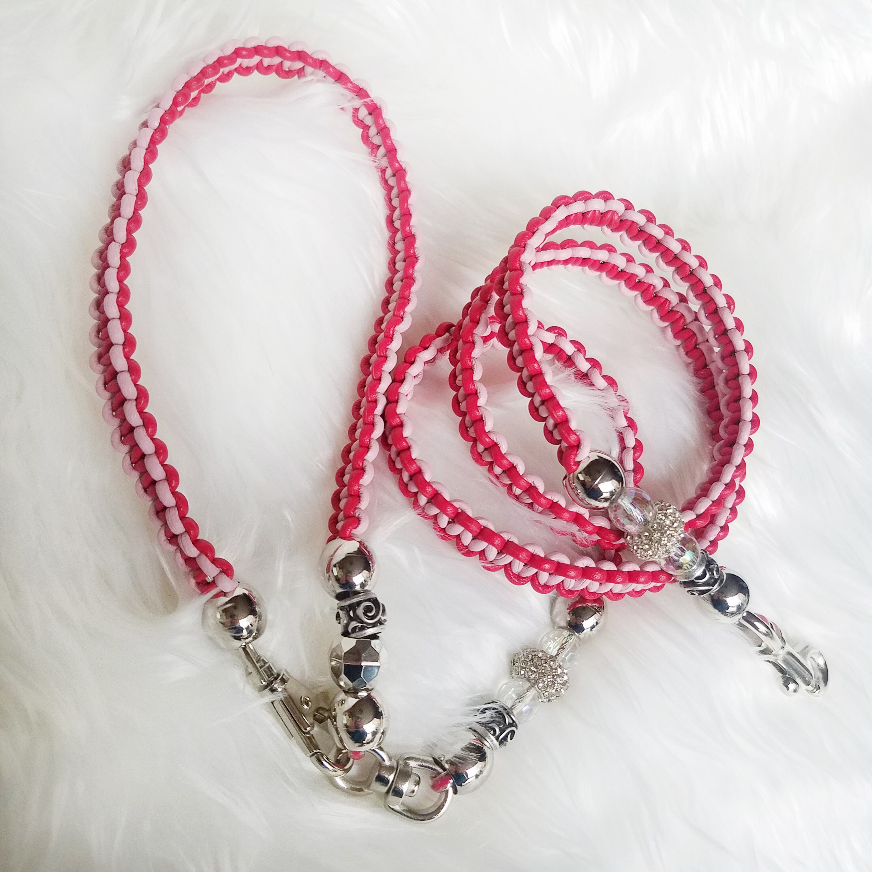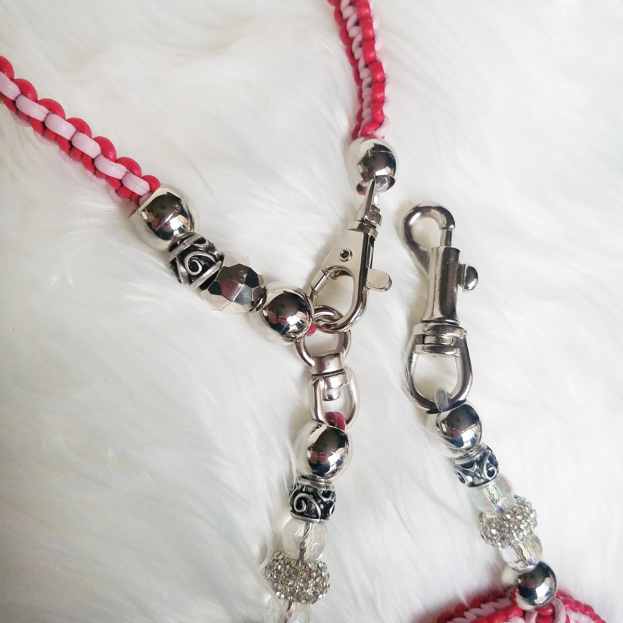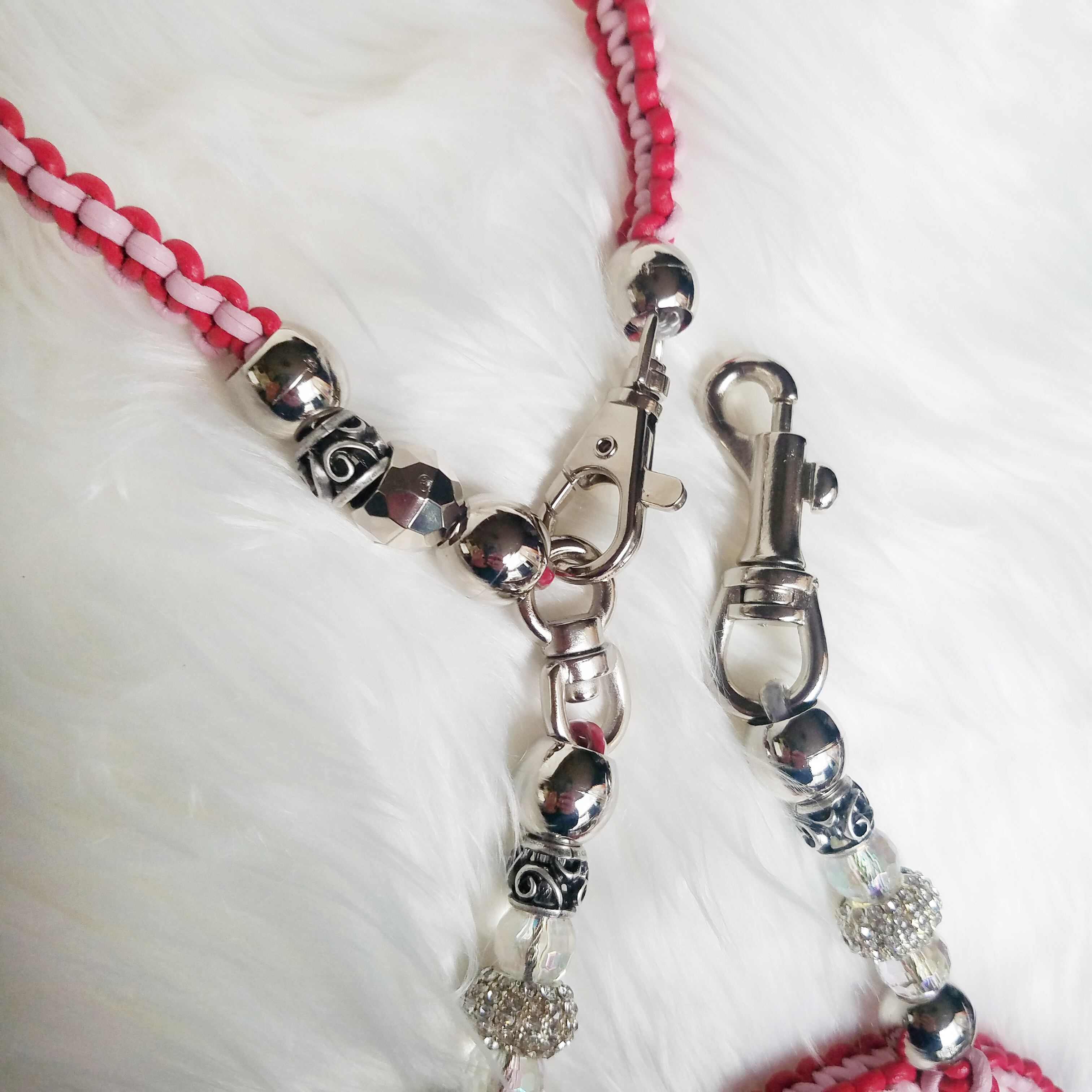 クリスタルがキラキラのラインストーンがポイントの2色かけ合わせ革編みリード。