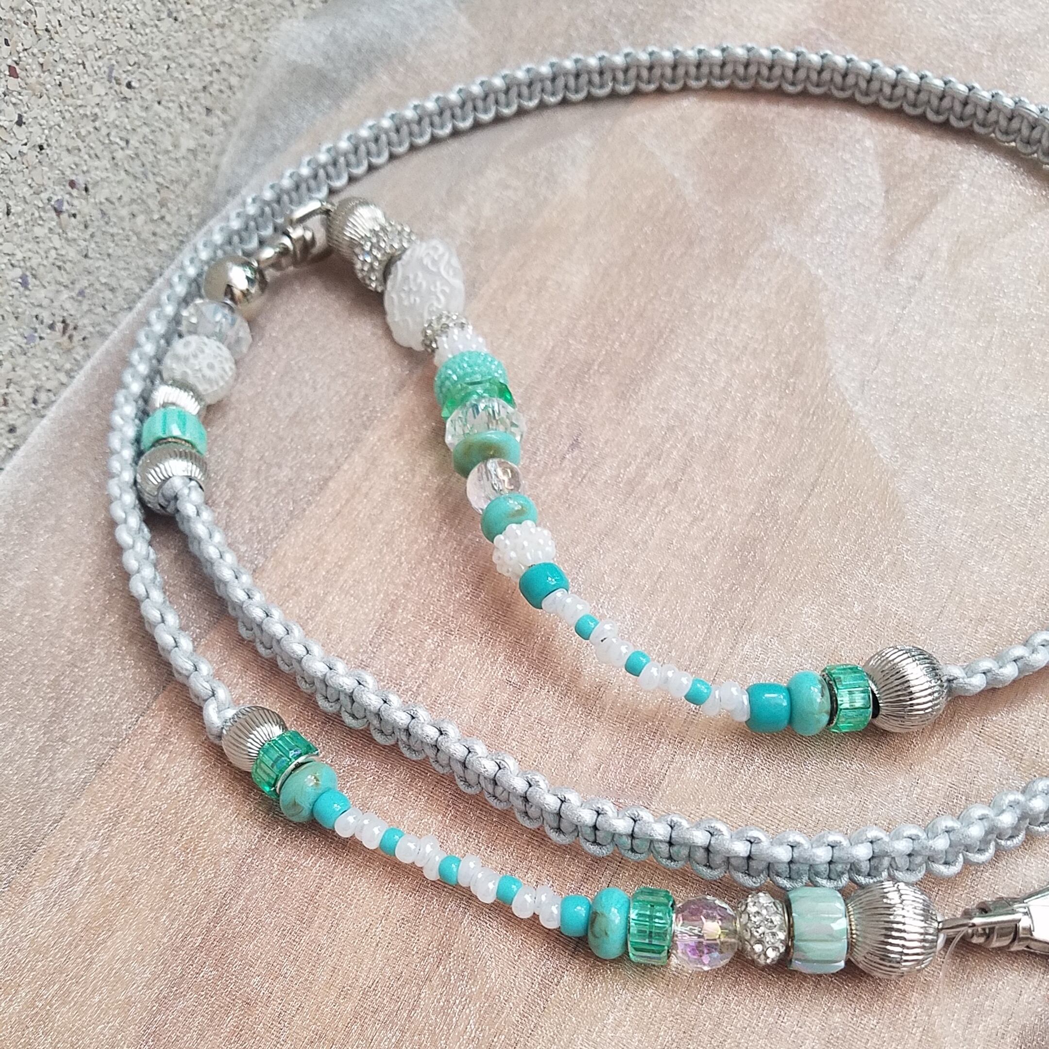 優雅なプラチナのような明るめのシルバー革を使用した革編みリードです。