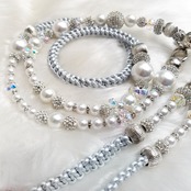 使用素材:クリスタルラインストーンビーズ、スワロフスキビーズ、メタルビーズ、牛革紐(日本製)、ステンレスワイヤーなど